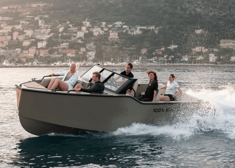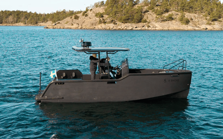 X Shore har mottatt flere internasjonale priser for design og bærekraft. Eelex 8000 kombinerer elegant estetikk med gjennomtenkt funksjonalitet.